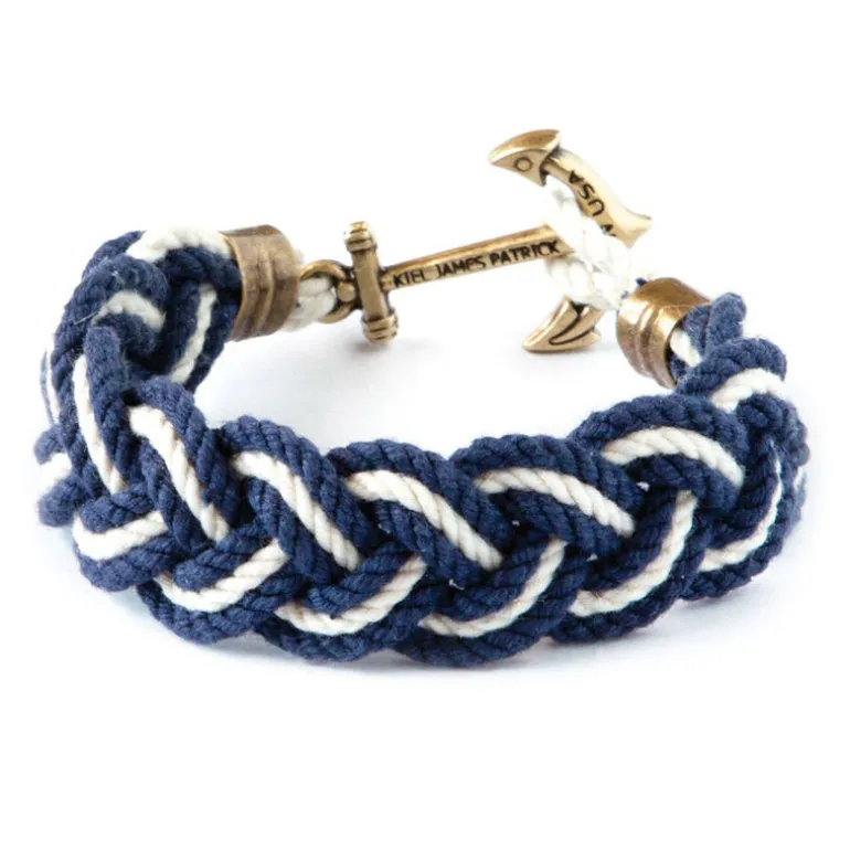 As kids growing up on the Cape, Kiel and his brother Tom would pick out their sailor bracelets every June. Shrinking them to their wrists under hot water, the rope bracelets would endure an entire summer of havoc and adventures. It was always a terrible moment when at the end of the summer their favorite bracelet would have to be cut off. The KJP Turk’s Head Knot bracelet is fastened with our signature anchor clasp so that you can wear your bracelet when you want to — and take it off when you need to.