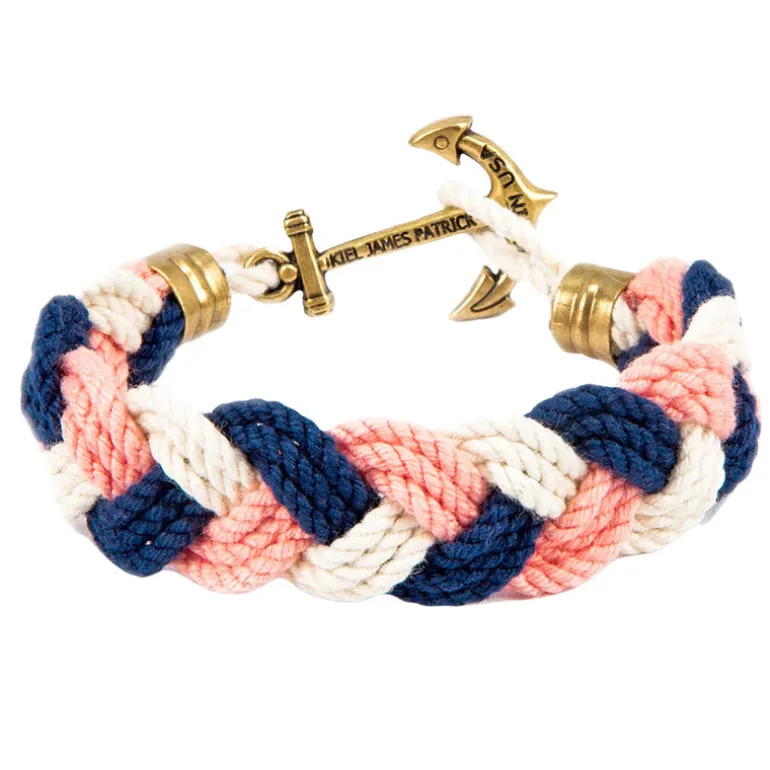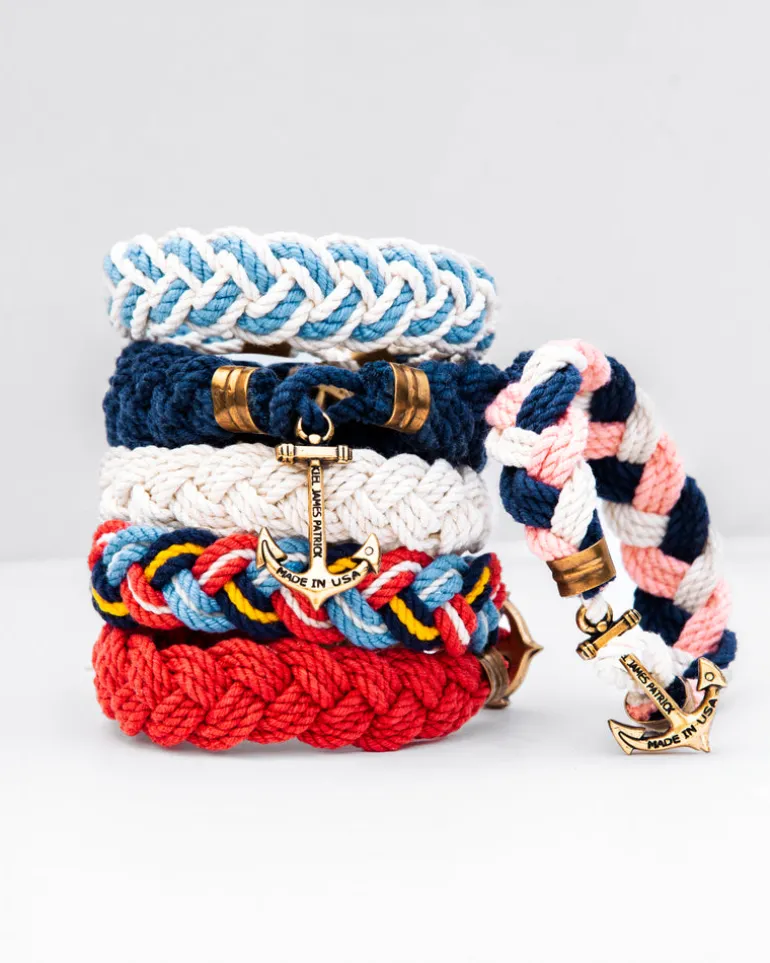 As kids growing up on the Cape, Kiel and his brother Tom would pick out their sailor bracelets every June. Shrinking them to their wrists under hot water, the rope bracelets would endure an entire summer of havoc and adventures. It was always a terrible moment when at the end of the summer their favorite bracelet would have to be cut off. The KJP Turk’s Head Knot bracelet is fastened with our signature anchor clasp so that you can wear your bracelet when you want to — and take it off when you need to.