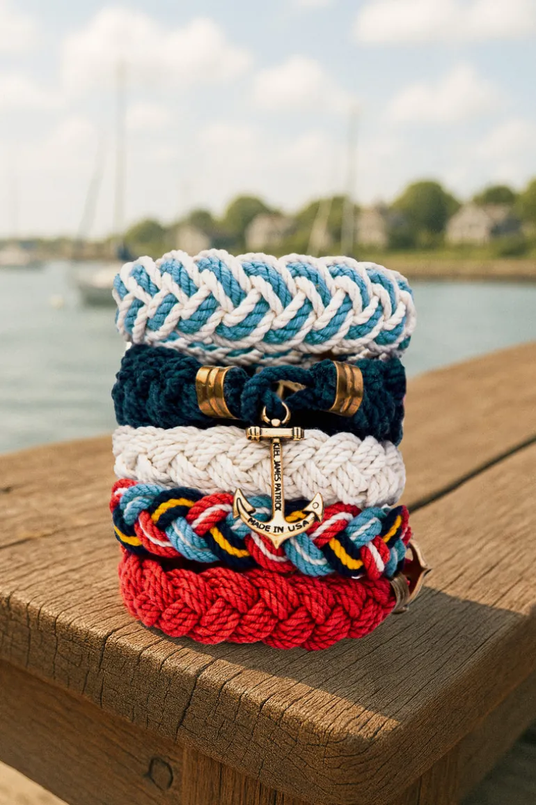 Our Turk’s Head Knot Collection bracelets are a recreation of the timeless beachside accessory. Each bracelet is hand-braided with our locally twisted nautical cord in a variety of classic New England colors.