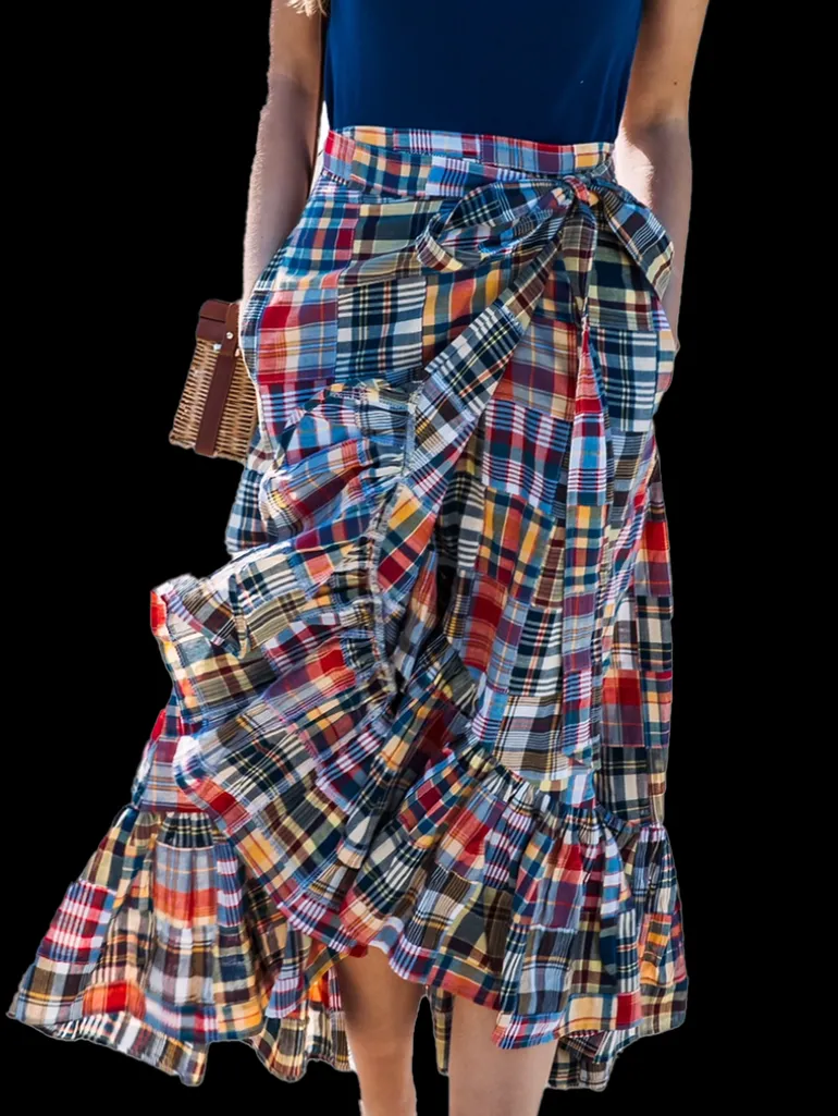 Our Jacqueline Patchwork Madras Skirt has arrived! It is the latest addition to our Madras Patchwork Collection. The patchwork design samples an array of our all time favorite Madras patterns for a bold summer statement. The wrap style adds a casual sophistication for special occasions or an effortless everyday look. This skirt is guaranteed to be a beautiful compliment to your summer wardrobe.