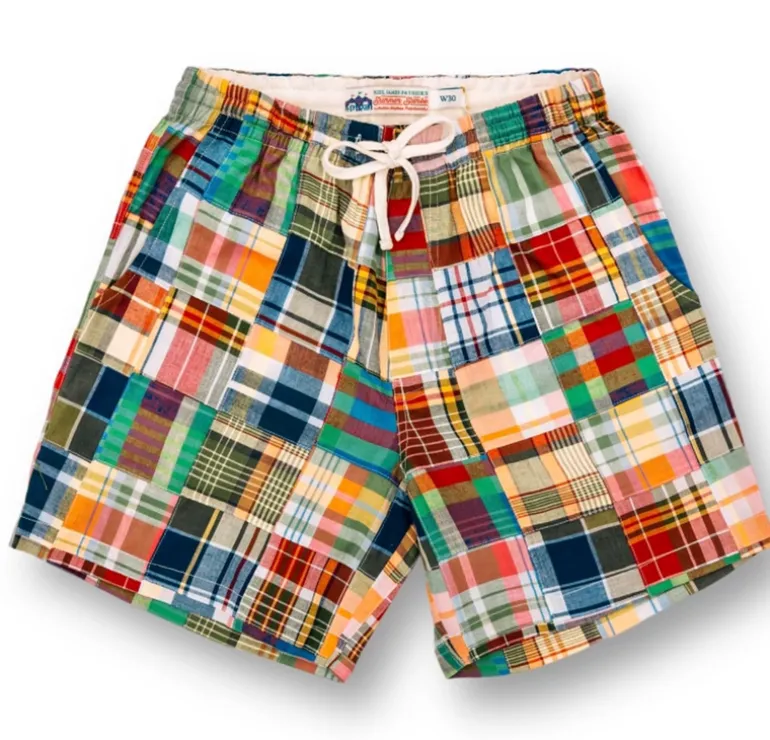 A colorfully crafted collection to celebrate an endless summer of garden parties, cocktail hours, and sunset shindigs. Our custom patchwork design samples an array of our all time favorite Madras patterns for a bold summer statement. Each piece is traditionally stitched together from lightweight cotton to ensure the only thing standing between you and your leisurely off the clock adventures, is an exceptionally comfortable layer of authentic Indian Madras.