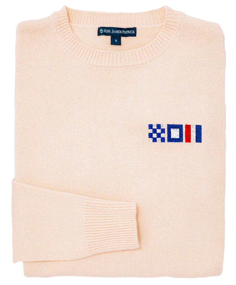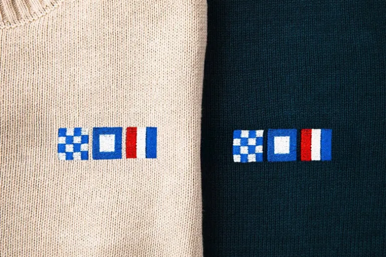 Readable only by true mariners, each sweater is embroidered to reflect the letters of your choice using the corresponding Signal Flag to your initials.