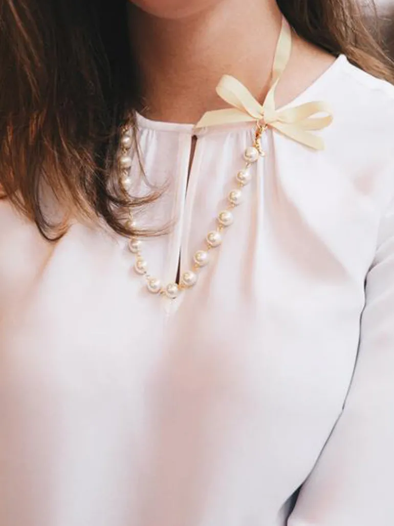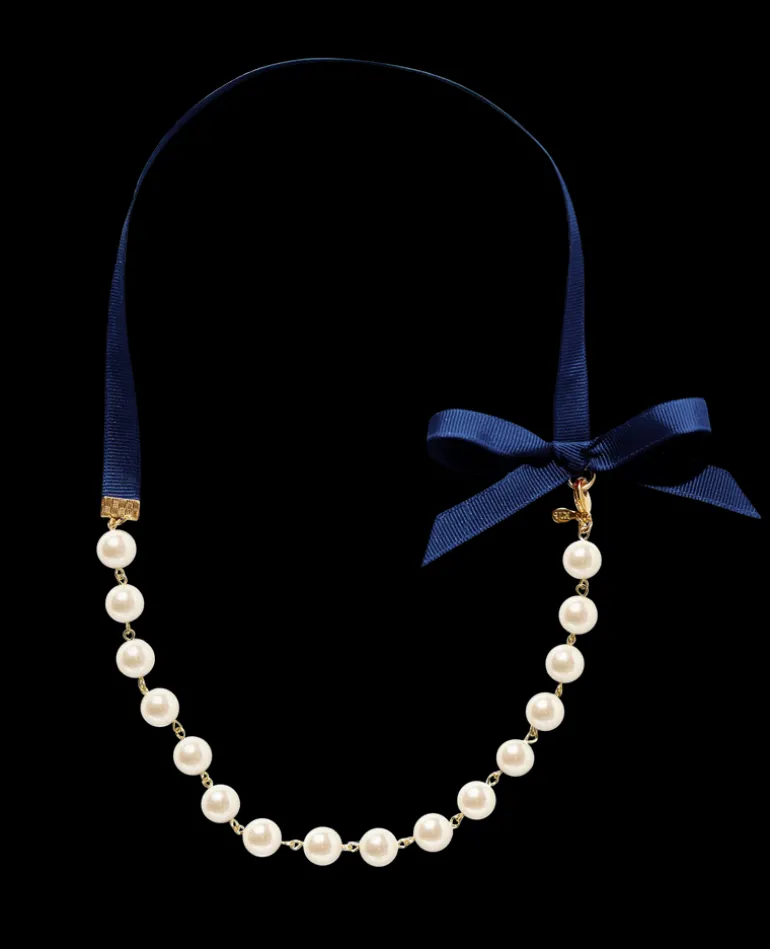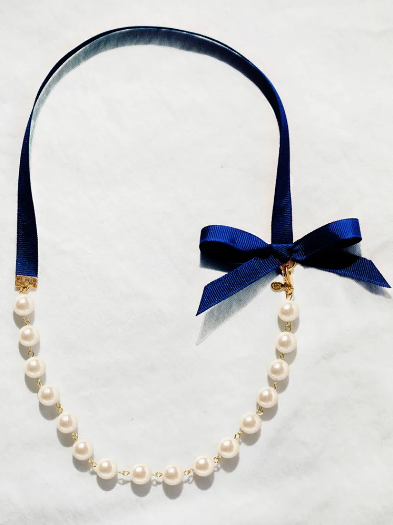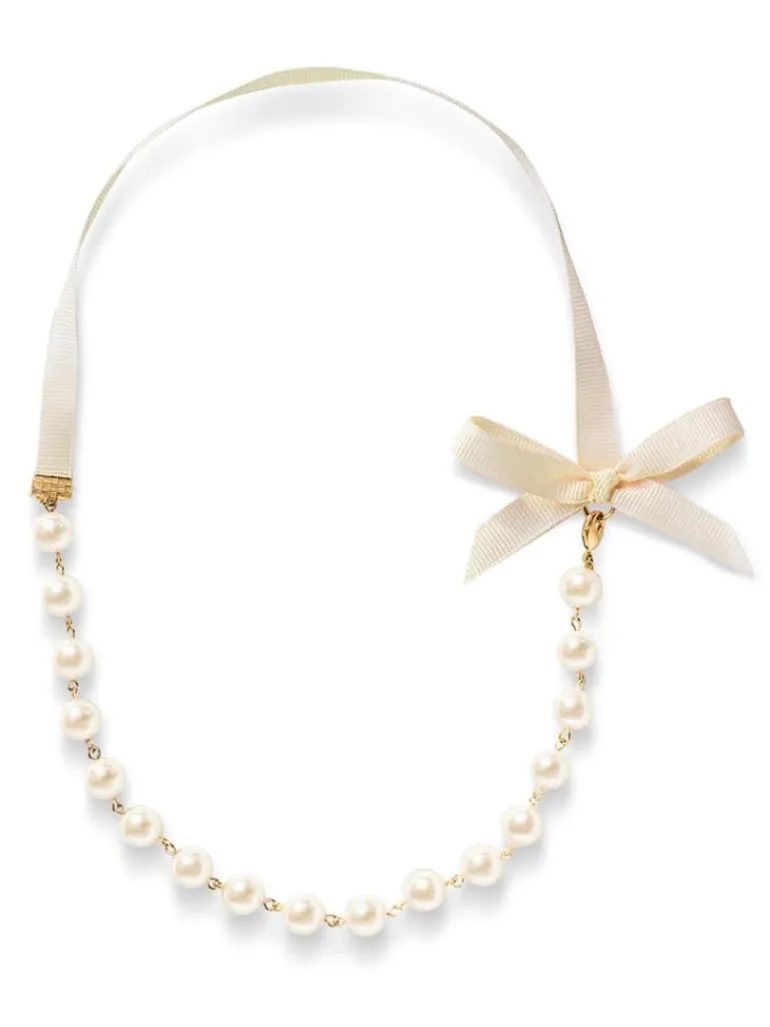 We combined two of our favorite things bows and pearls for a subtle statement necklace that will go with everything.