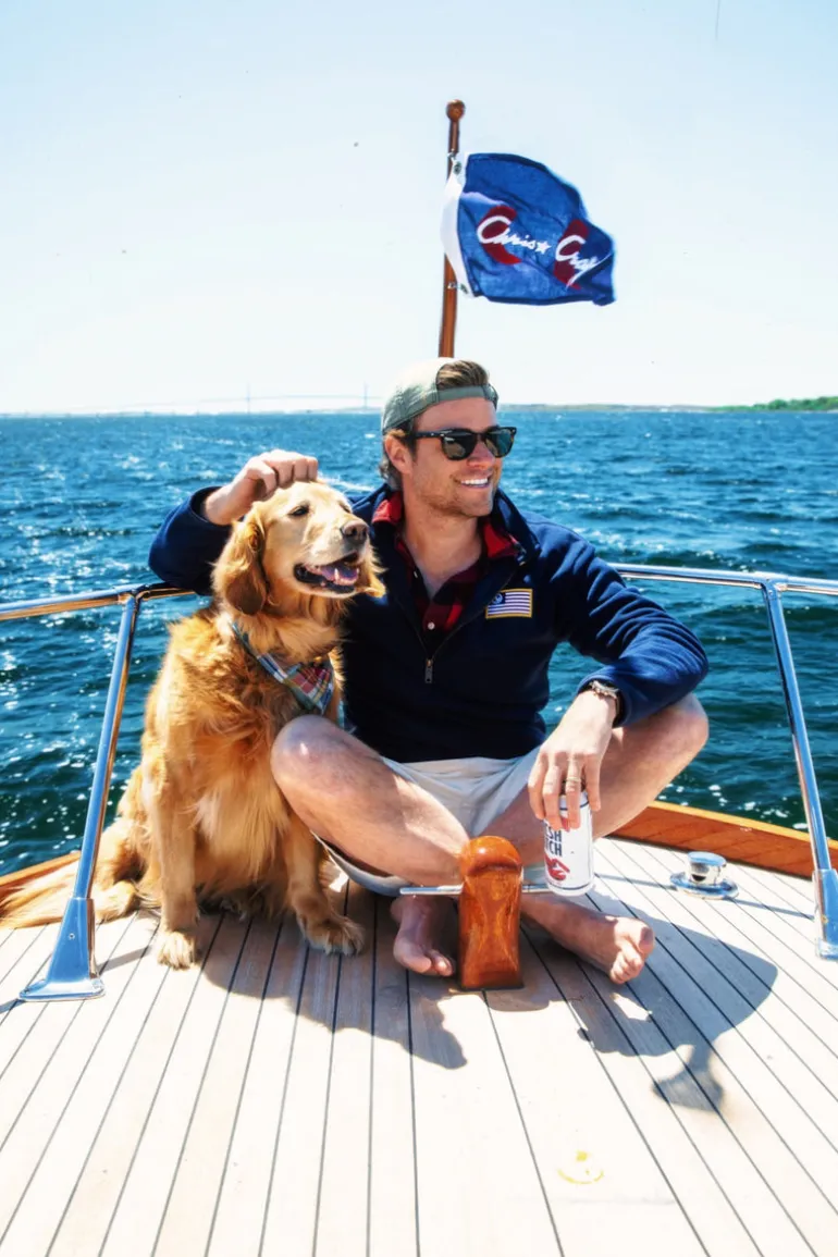 - Embroidered yacht flag on chest